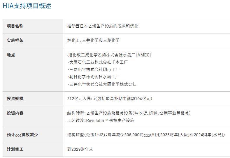 为了实现这些目标,这三家公司在经济产业省(METI)的“ 2025 财年难减排行业能源与制造工艺转型支持计划 ■”(HtA 支持计划)中申请并入选,并将签署一份基本协议,以建立一个新的联合运营实体,总投资 212亿日元 (约合9▽.63亿元人民币)…●,用于管理日本西部的这两座乙烯生产设施-,并终止 旭化成三菱化学乙烯公司(AMEC) 位于冈山县仓敷市的水岛工厂的乙烯生产设施的运营,并将运营整合至位于大阪市高西的大阪石化工业有限公司(OPC)的设施中,目标是在 2030 财年实现这一目标。